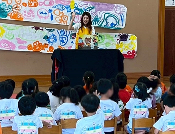 京都府交通安全協会オリジナル交通安全紙芝居「パンツがとんでった」を朗読してもらって、交通ルールを守ることの大切さを、わかりやすくこども達に伝えてもらいました。