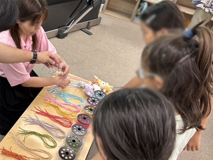 八木せきれい西放課後児童クラブで反射材ミサンガづくり♪