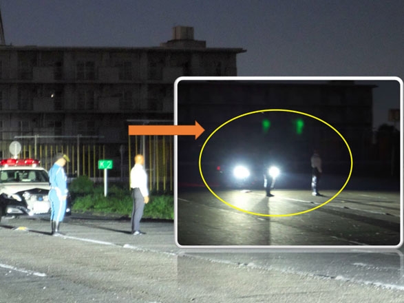 また、対向車同士の車のヘッドライトが交錯する際に、その間にいる歩行者が一時的に視界から消えてしまう「蒸発現象」の体験なども行って、夜間に道路を横断する際などには十分気を付けてもらうようお話ししました。