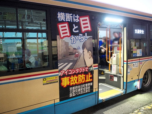 阪急バス株式会社大山崎営業所様のご協力のもと、試験場内のコースをバスに乗って周り、暗い中での危険箇所や注意ポイントのチェックを行いました。