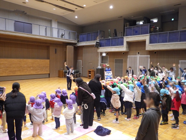 綴喜交通安全協会は、12月11日(木)、田辺警察署や音楽隊などの関係機関と共に、大住こども園で園児163名を対象とした交通安全教室を行いました。