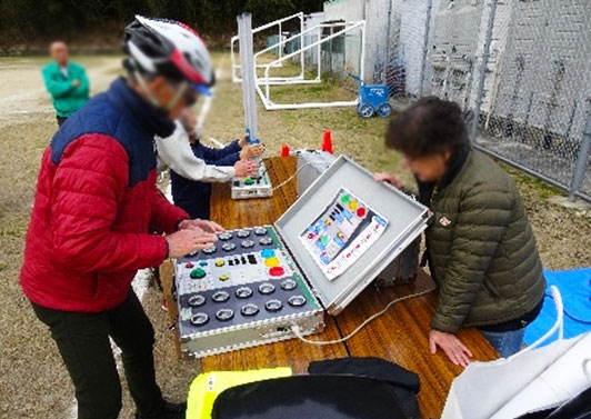 また、会場には光るボタンを両手で押す「クイックアーム」と落ちてくる光を両手でキャッチする「クイックキャッチ」を設置して、自転車や車の運転に必要な反射神経や両手の判断力の違いをチェックしていただきました。