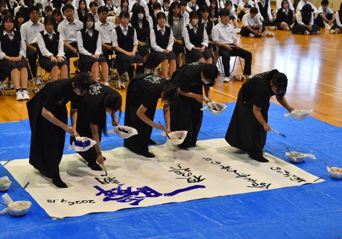 委嘱式の後には、東舞鶴高校の書道部の皆さんが、参加者の皆さんに書道パフォーマンスで、力強く秋の全国交通安全運動をアピールしてくれました!