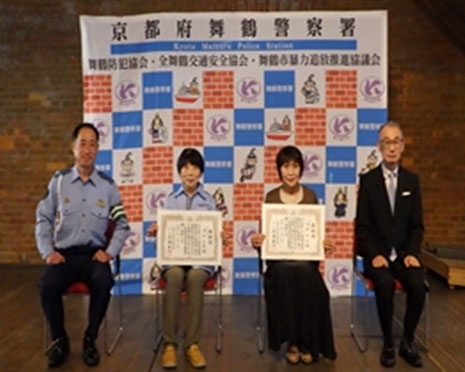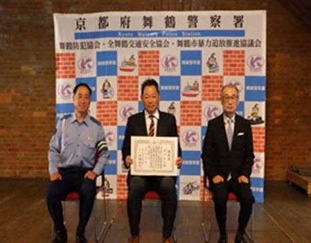 全舞鶴交通安全協会は、9月29日(月)、舞鶴警察署と共に、舞鶴赤レンガパークで、「令和7年 秋の交通安全功労者等表彰」の伝達式を行いました。