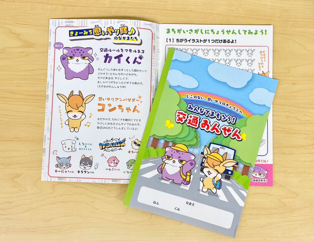 保護者の手から離れ、一人で行動する機会が増える小学2年生に、道路標識クイズやまちがいさがしで楽しく交通安全を学んでもらう