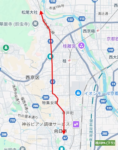 京都市西京区の松尾大社周辺から京都府道29号を南に下がり、千代原口交差点を京都府道67号を通って、向日市の京都向日町競輪場付近で西国街道と合流するまでの6.5kmの道のことを物集女(もずめ)街道と言います。