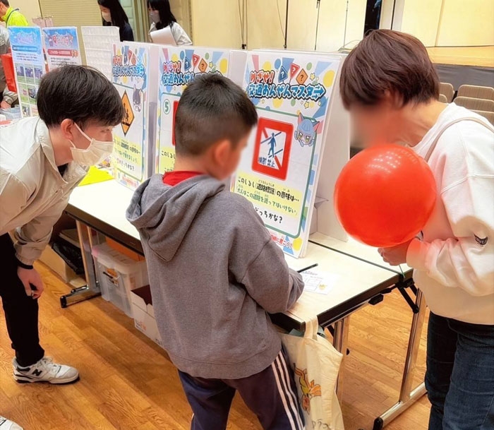 「交通安全フェア」は、皆さんに楽しく交通安全意識を身につけていただくため、京都府内の各自治体と協力して、年1・2回開催しています。