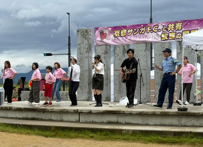 京都府交通安全協会と南丹船井交通安全協会は共同で、10月4日(土)、京都サンガのホームゲーム開催に合わせて、「サンガスタジアム byKYOCERA」のかめきたサンガ広場で交通安全啓発活動を行いました。