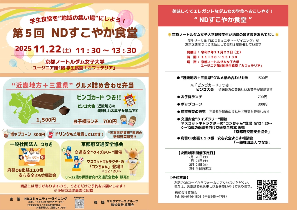 京都府交通安全協会は、11月22日(土)、京都ノートルダム女子大学の食堂で開催される