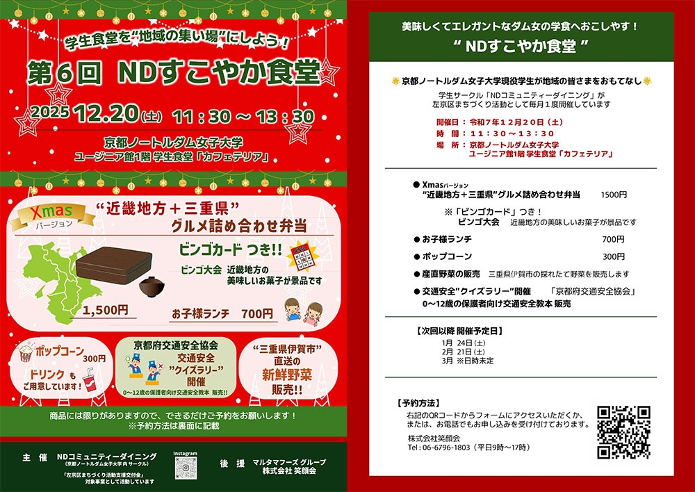 京都ノートルダム女子大学ユージニア館1階 学生食堂「カフェテリア」地下鉄 北山駅から徒歩7分🌟🌟🌟※イベントには予約なしでもご参加いただけますが、食事や商品には限りがありますので、出来るだけご予約の上ご来場をお願いします。ご予約フォームはこちら