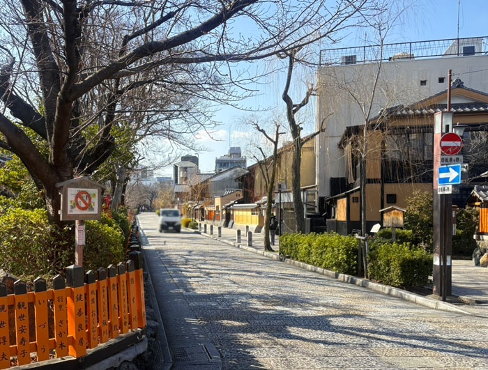東端で合流する新橋通と合わせて、風情溢れるこのエリアは、「祇園新橋伝統的建造物群保存地区」と定められており、祇園の風景を残す取組がなされているそうです。